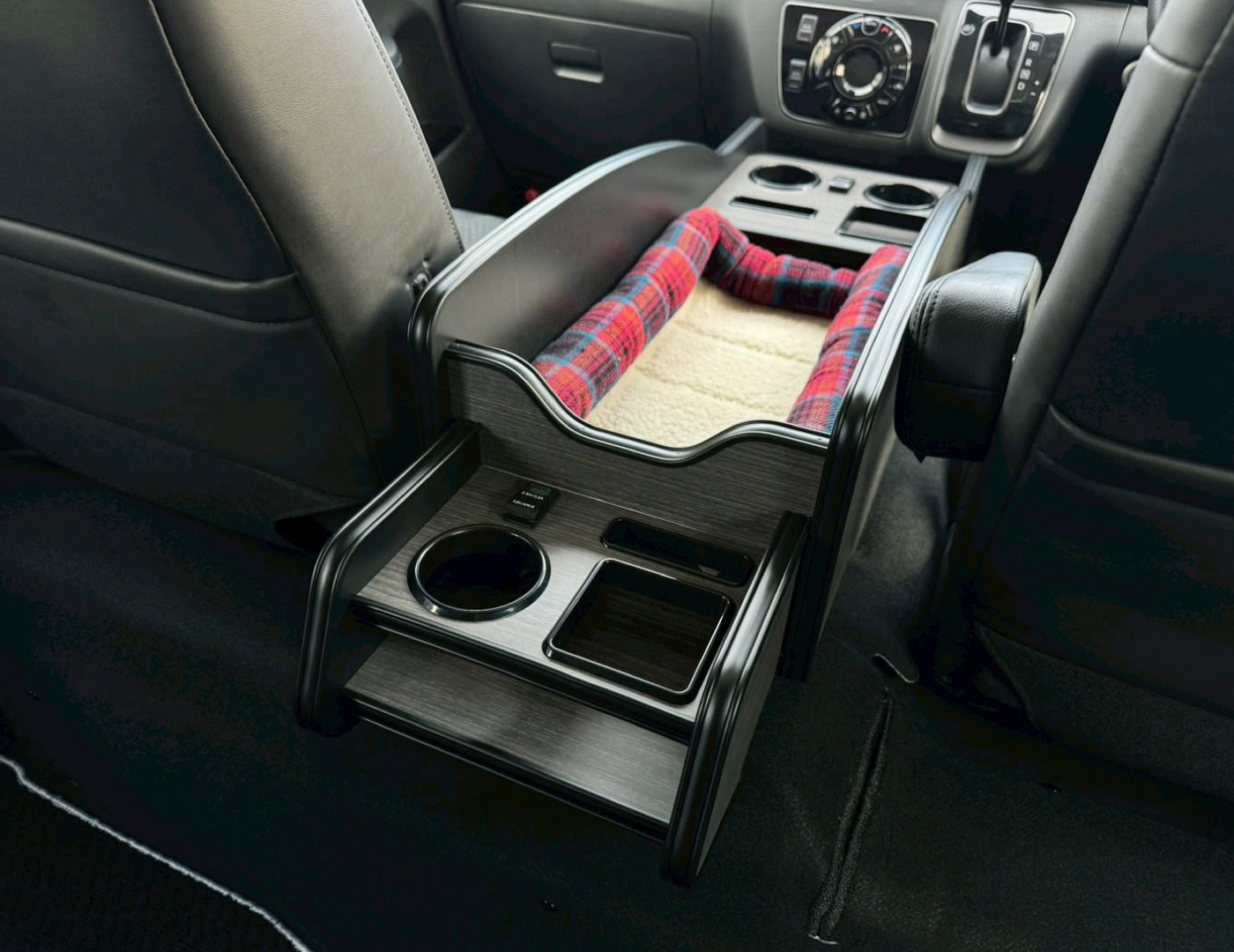 キャラバンのセンターコンソールがワンちゃんのベッドに大変身!!
