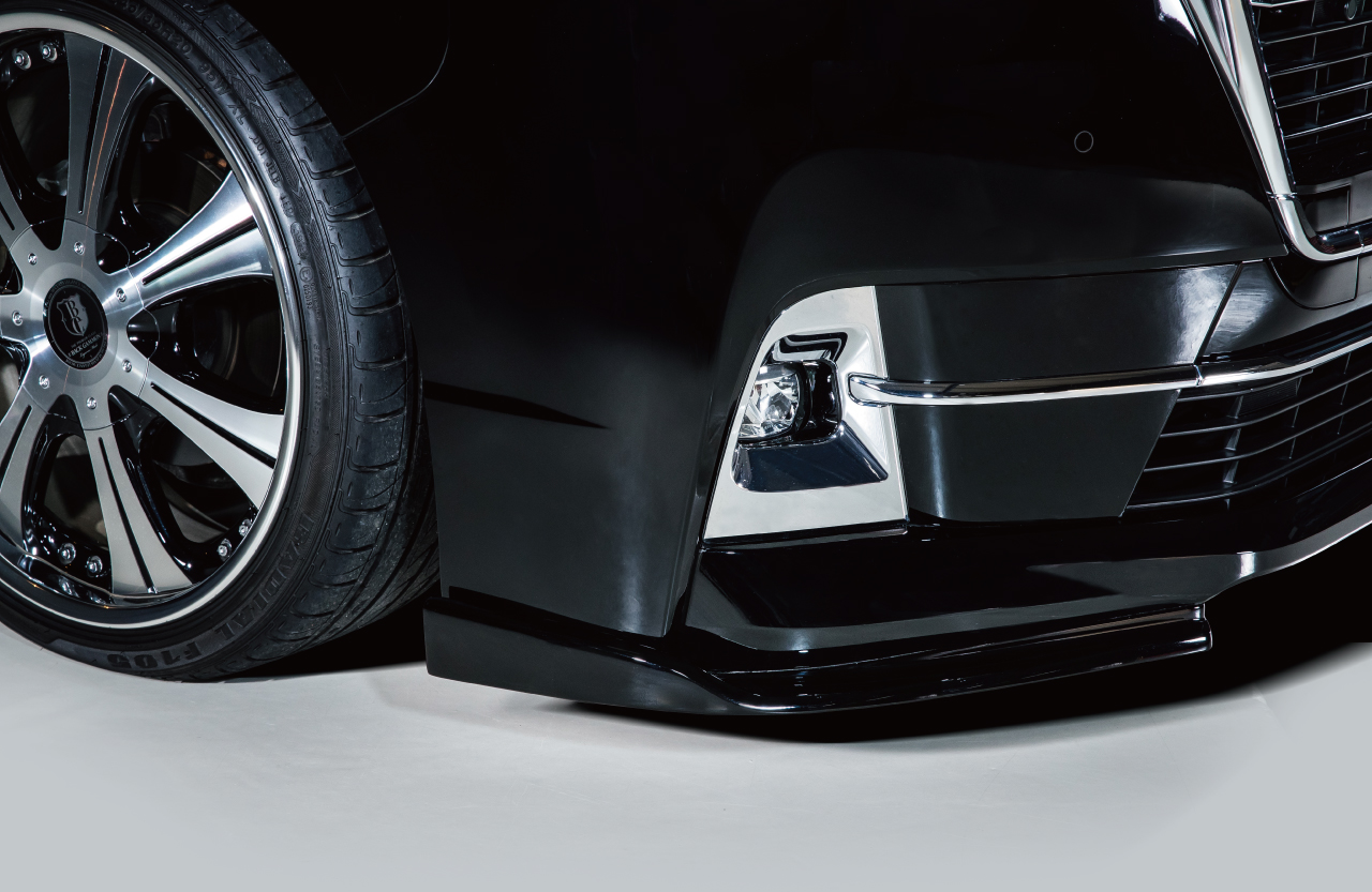 グランエース、ノーマルの純正バンパーにも装着可能としたフロントカナード。