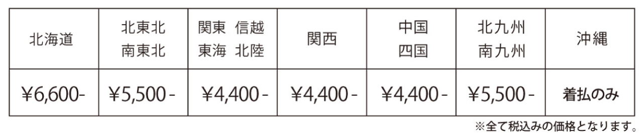 ファイバーボンネット 送料表