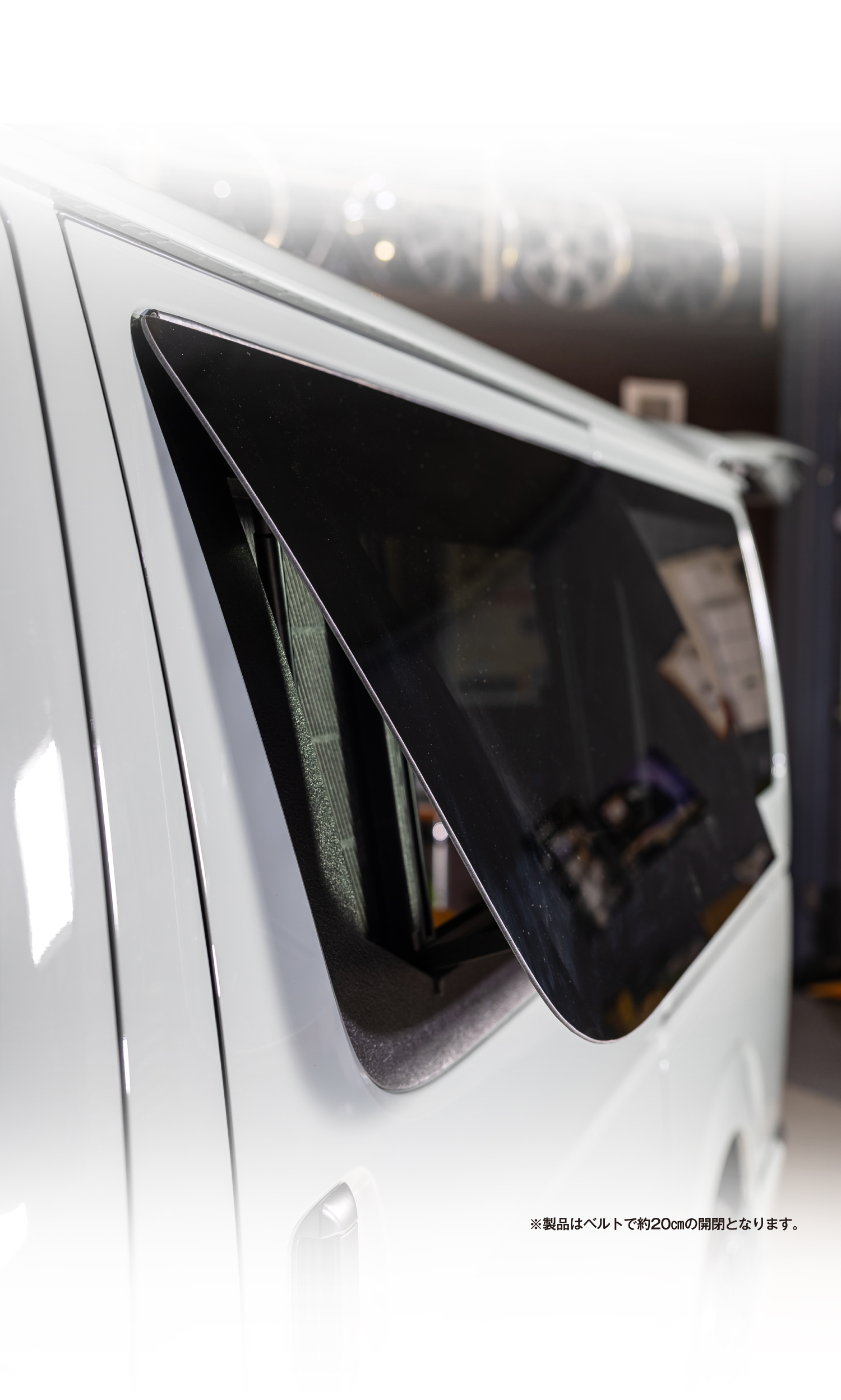 ハイエーススライドドア用の『ガルウインドウ』は見た目も極力違和感なく制作した