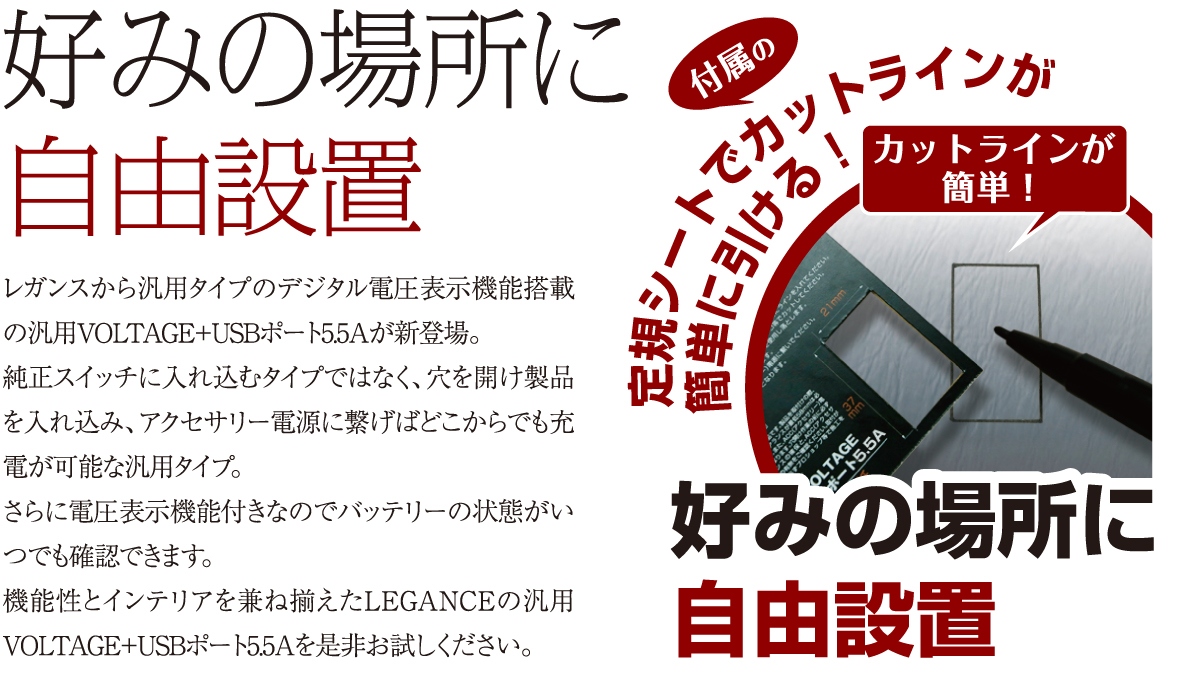 機能性とインテリアを兼ね揃えたLEGANCEの汎用VOLTAGE+USBポート5.5Aを是非お試しください。
